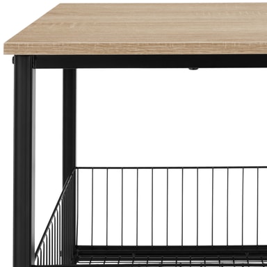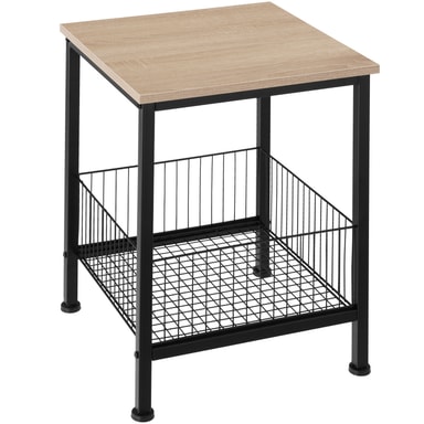 Det flotte Grimsby sidebord er et elegant eksempel på den industrielle livsstil. Den stabile dækplade med de fine årer i et varmt trælook udgør en charmerende pendant til den pulverlakerede stålramme med integreret mesh-kurv i kølig sort. Det lille pladsbehov og den brede vifte af anvendelsesmuligheder gør den åbne konstruktion yderst fleksibel og særdeles attraktiv. Fire højdejusterbare fødder lavet af gulvvenlig plast garanterer den bedste balance - en indretningsidé, der er visuelt og funktionelt overbevisende over hele linjen: det alsidige Grimsby sidebord fra tectake.