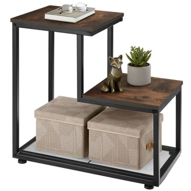 Sæt dekorationer i fokus på det repræsentative Halifax sidebord fra tectake. De to hylder på dette sidebord, der er forskudt i højden og med deres attraktive træ-look årer, giver en fremragende base for planter eller andre dekorative genstande. Den plejevenlige konstruktion med sit lille fodaftryk er givet et yderligere niveau takket være den store gitterhylde i det nederste område. Det pulverlakerede stålstel på dette sidebord sikrer fremragende stabilitet og spændstighed og understreger i sin chikke sort elegancen af det trendy Halifax sidebord i et smagfuldt industrielt design.