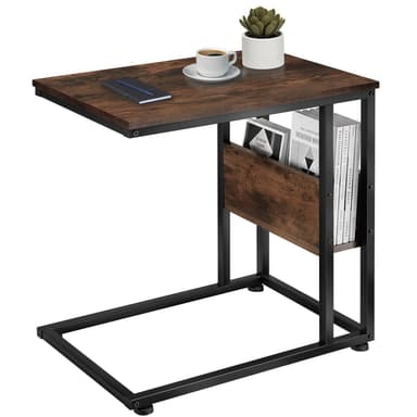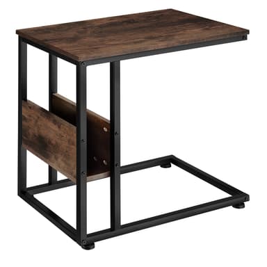 Det bemærkelsesværdige sidebord Wigan fra tectake giver personlighed til dit interiørdesign. Takket være sin asymmetriske C-form kan det karakteristiske sidebord i den industrielle stil nemt skubbes ind under lænestolen, sofa eller sengen. Den robuste hylde til opbevaring og det rummelige sidebord med det fine åre i trælook udstråler naturlig charme og harmonerer perfekt med det sorte stel af massivt stål på dette sidebord. De fire plastikfødder kan justeres med millimeterpræcision for at sikre maksimal stabilitet - det ideelle bord som supplement til en hyggelig aften foran tv'et som sofabord: det praktiske sidebord Wigan fra tectake.