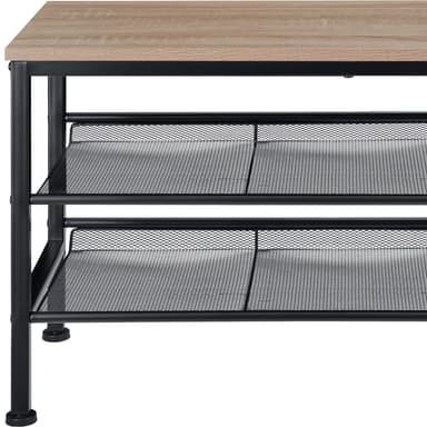 De to tætmaskede gitterhylder på den moderne skoreol kan fastgøres enten fladt eller på skrå, lige som du ønsker det. Kombiner denne funktionelle skoreol med en skobænk for ekstra opbevaring og komfort, så du nemt kan sidde og tage skoene på.