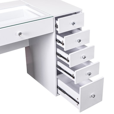 Den har 6 store opbevaringsskuffer der glider glat og stille, og giver rigeligt plads til alle sminkeprodukter.