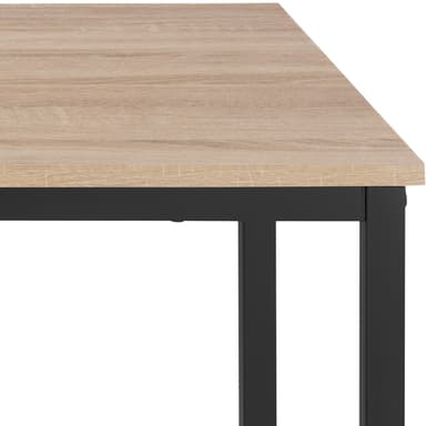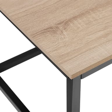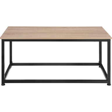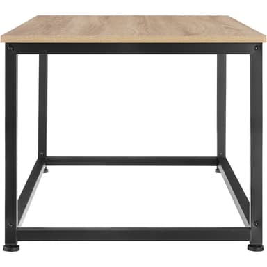 Med det kantede Lynch sofabord fra tectake kan du berige din stue med et bøbel i det trendy industrielle look, der er lige så smagfuldt som det er praktisk. Det kølige stål i den pulverlakerede ramme på dette sofabord er det ideelle modstykke til den flotte hylde i et varmt trælook. Dette sofabord tilbyder plads til opbevaring og passer ind med de fleste møbler. Desuden er dette sofabord slankt og diskret, hvilket gør det nemt at kombinere med en behagelig sofa. Det funktionelle sofabord kompenserer let for ujævnheder i gulvet med sine fire justerbare skruefødder - diskret design, mange muligheder: det fleksible Lynch sofabord fra tectake.