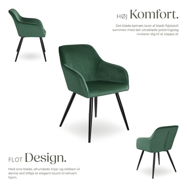 Med dens ergonomisk formede sæde, behagelige armlæn og luksuriøse polstring får du en stol, der kombinerer æstetik og funktionalitet. Uanset om du nyder en hyggelig middag eller en afslappet stund med en kop kaffe, tilbyder denne stol en førsteklasses siddeoplevelse. Denne stol er en tidløs og smagfuld tilføjelse til ethvert hjem!