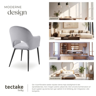 Takket være det ergonomiske design tilpasser stolene sig optimalt til din kropsform og giver fremragende støtte til ryg og arme. Uanset om det er ved spisning, arbejde eller blot afslapning – den stilfulde spisebordsstol sikrer dig altid en behagelig siddeposition, der sikrer hygge og velvære.