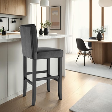 Denne barstol med ryglæn er en ideel kombination af klassisk design og moderne komfort, der gør den til et perfekt valg til hjemmet. Denne barstol har en siddehøjde på 76 cm, hvilket gør den optimal til brug ved kogeøer, barborde eller hjemmebarer, hvor den både tilfører stil og funktionalitet. Det godt polstrede sæde i sort kunstlæder sikrer en behagelig siddeoplevelse, selv under længere tids brug, mens den praktiske fodstøtte giver ekstra støtte og afslapning.