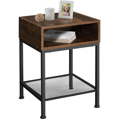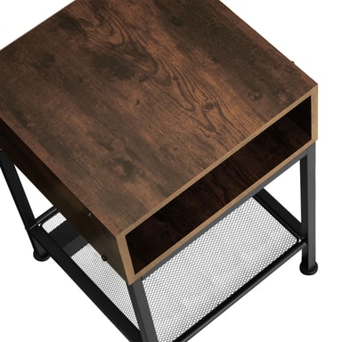 Den trendy blanding af varmt træ og køligt stål kendetegner det flotte udseende på Harlow sengebord fra tectake. Den stabile konstruktion af dette sengebord giver plads til opbevaring af små og store ting på tre forskellige hylder. Ujævnheder i gulvet kan nemt udjævnes ved at dreje de højdejusterbare plastfødder på sengebord Harlow. Dette sengebord er nemt at montere og passer perfekt til de fleste indretningsstile og møbler i et soveværelse. Takket være dets markante, men bevidst enkle look, kan det alsidige sengebord kombineres fremragende og passer også ind i stue, spisestue samt i entreen.