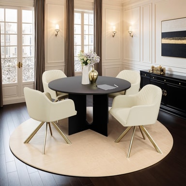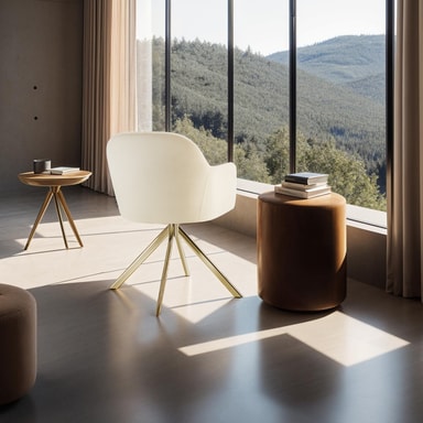 Stolen imponerer med sit yderst fine velour betræk, der ikke kun er et optisk højdepunkt, men i kombination med det store sæde og de gennemgående armlæn og ryglæn med høj tæthed polstring sørger for en superblød og behagelig siddeoplevelse. En særlig egenskab ved denne universelt anvendelige stol er dens letgående, 360° drejefunktion, som gør det muligt for dig at skifte position trinløst, når som helst du vil.