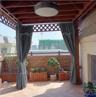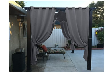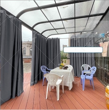 Vejrbestandigt stof: Disse gardiner er lavet af højkvalitets polyester og er designet til at modstå elementerne. De er falmebestandige, vandafvisende og bygget til at holde til forskellige vejrforhold.