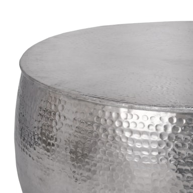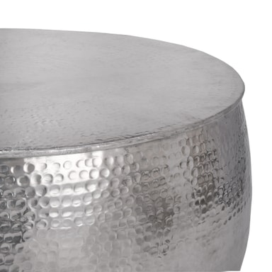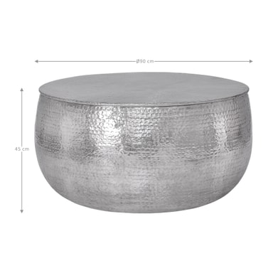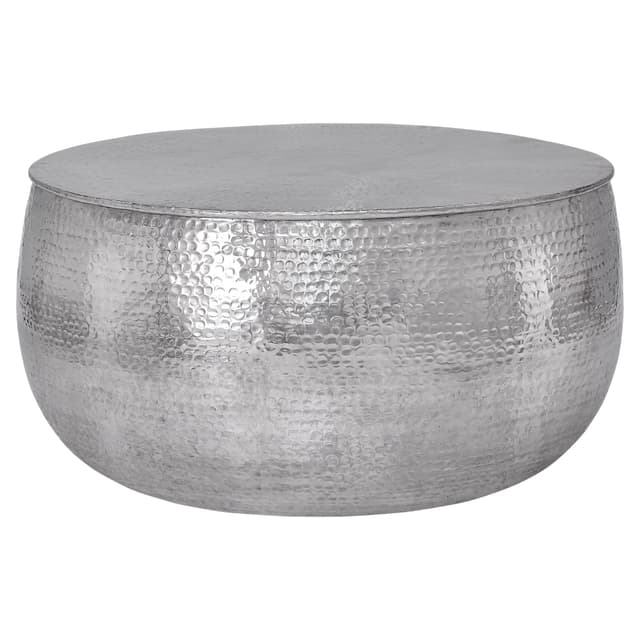Det massive aluminiums sofabord i en trendy hammerblæseroptik er lavet af ubekymret og kvalitet i hånden. Takket være den håndhårede aluminiumsbordplade ser bordet særligt elegant ud og er garanteret at være en rigtig iøjnefaldende i din lejlighed. Ud over designet tjente bordet også dens funktionalitet og tilbyder et tilstrækkeligt stort område til en bred vifte af dekorationsobjekter.