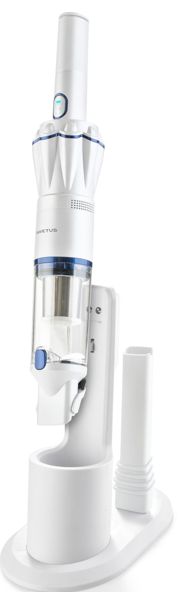 Invictus one revolutionerer din forventning til en håndstøvsuger. Med den allerseneste teknik, kombinerer den maksimal kraft med meget lav vægt og lækkert moderne design. Den højtydende bldc-motor med totalt 90w effekt, giver dig mere end dobbelt så høj sugekraft sammenlignet med en traditionel håndstøvsuger. desuden har invictus one et dobbelt filtersystem, inkl et hepa-filter, der effektivt filtrerer den indsugede luft. til rengøring af sarte overflader er invictus one udstyret med et børstesystem, der omvandler det normale mundstykke til et børstemundstykke med kun et klik! Støvbeholderen tømmes med en hurtigrensningsfunktion så du undgår at komme i direkte kontakt med snavs og støv. invictus one er altid parat til at levere takket være den pladsbesparende ladestation, der oplader invictus one når den ikke er i brug. til invictus one findes der flere innovative tilbehør, der gør din støvsugning endnu lettere