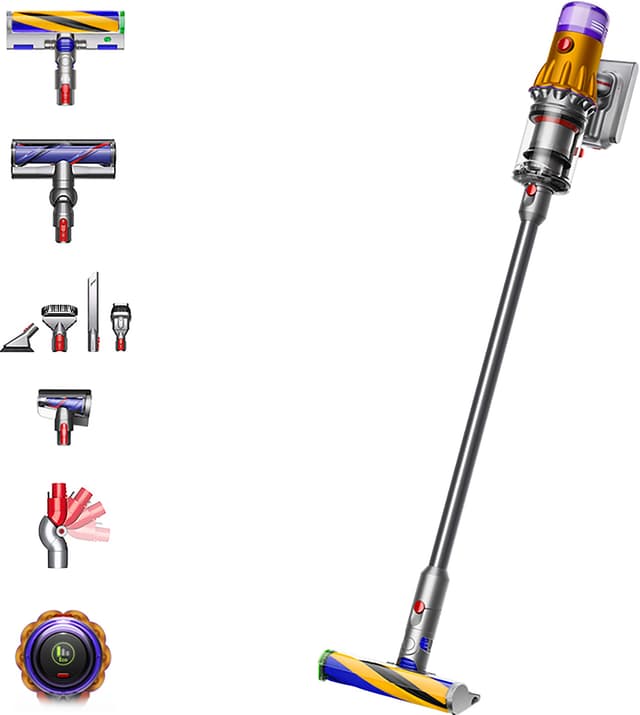 Med Dyson V12 Slim Absolute støvsugeren kan du nå støvpartikler, der er så små, at de er usynlige for det blotte øje med enhedens laser, der detekterer snavs. Med flertrinsfiltreringssystemet og et lasertyndt, luftigt hoved fjerner denne støvsuger op til 99,99% snavs. Støvsugeren er også udstyret med en LCD-skærm og en hårstridsskrue.