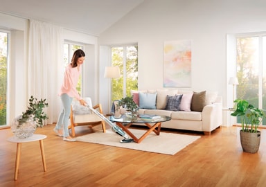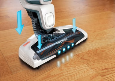 Børste-rulle rengøringsteknologi: Med den nye Børste-rulle rengøringsteknologi, bruger du enkelt din fod til at trykke en pedal ned på toppen af sugehovedet, hvorefter alle indviklede hår og fibre, bliver skåret over, så de nemt at suges op. Det er både nemt og hygiejnisk og gør, at støvsugerens ydeevne er på sit højeste.
