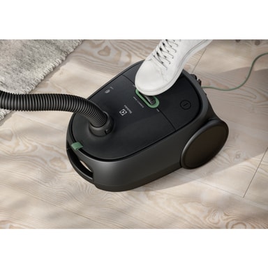 Electrolux Clean 600 Green Bagged støvsugeren EB61C2GRN giver pålidelig og kompromisløs ydeevne. Få flydende støvsugning med færre afbrydelser takket være dens sugeevne og et smart design med komplet fodkontrol, som gør det hurtigt at regulere styrken og nå hver knap uden at bøje dig forover. Dust Magnet Silent-dysen med automatisk gulvtilstand, en ParkettoPro-dyse og et højfiltreringssystem med det vaskbare og hygiejniske E12-filter sikrer pletfri gulve og renere luft for at få et sundere hjem. Apparatet er lavet af 65% genanvendt plastik, som gør støvsugeren til en god kombination af kraft og øget bæredygtighed.