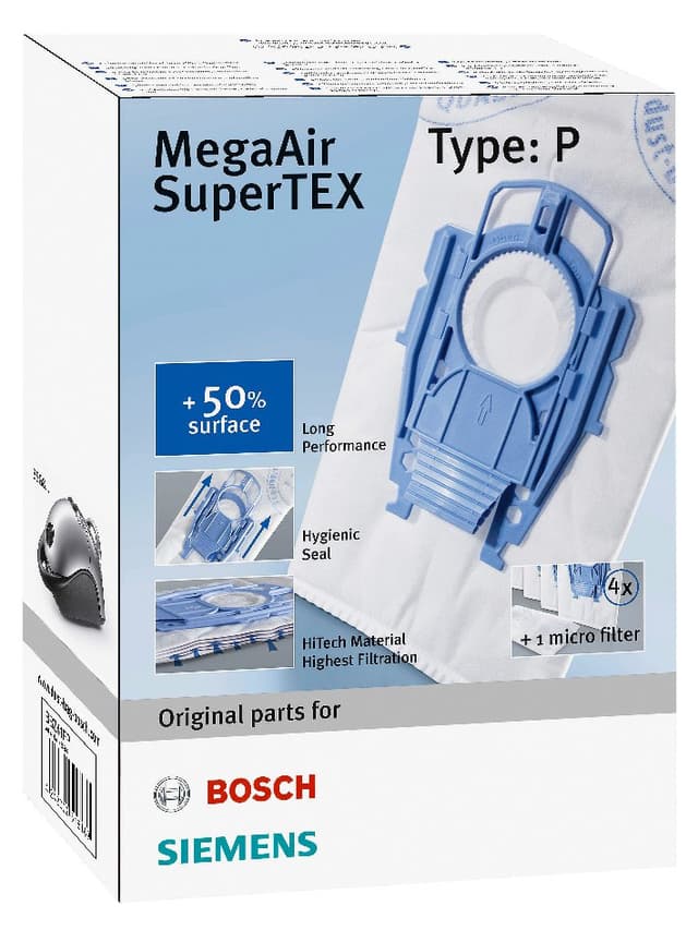 MegaAir SuperTEX støvsugerposerne passer til Simens VS08-serien og Bosch BSG/BBS-serien. Pakken har 4 støvsugerposer.Læs mere om produktet