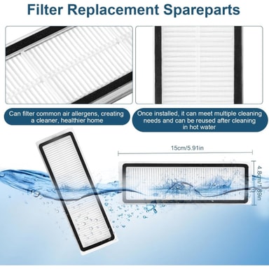 Forbedret rengøringsydelse: Udskiftningshovedbørsten har børster af høj kvalitet og et robust design til effektivt at løfte snavs, støv og affald fra forskellige gulvtyper. Filtrene fanger fine partikler, allergener og kæledyrsskæl, hvilket forbedrer luftkvaliteten i dit hjem. Moppepuderne er lavet af absorberende mikrofibermateriale, perfekt til at fjerne genstridige pletter og spild. Ved at bruge disse udskiftningsdele sikrer du, at din Dreame D10 Plus Gen 2 robotstøvsuger fortsætter med at levere enestående rengøringsresultater, hvilket efterlader dine gulve skinnende og din luft frisk. Dette sæt er essentielt for at opretholde den høje ydeevne af din Dreame D10 Plus Gen 2.