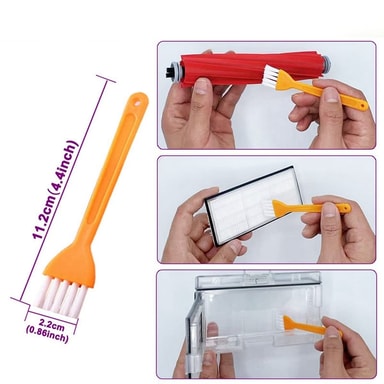 Xiaomi Roborock tilbehør, der passer til modellerne Roborock S7/S7 Plus/T7/T7 Plus/T7s/T7s Plus. Sættet indeholder hovedbørste (gummibørste), sidebørster, moppeklude og støvsugerfilter samt et rengøringsværktøj til at rense reservedelene når de skiftes ud.