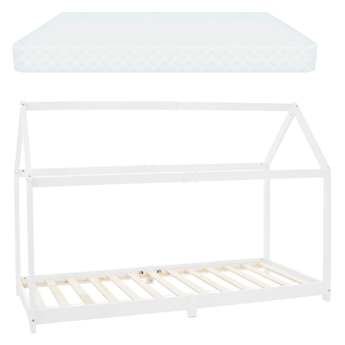 Børneseng med top og gitterramme, inkl. madras 90x200 cm hvid