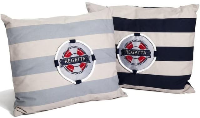 Kuddfodral i tjock bomullsväv, detaljer på fodralet med rep och påsytt märke.