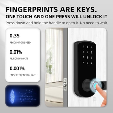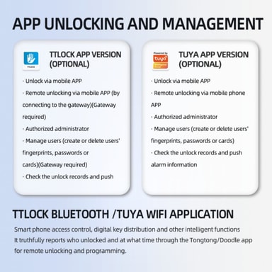 • Lås op via TTLock Bluetooth-app, fingeraftryk, adgangskode, NFC, kort, nøgle eller midlertidig adgangskode.