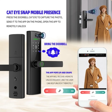 Fjernadgang: Tuya WiFi-forbindelsen giver dig mulighed for at fjernstyre og overvåge din dørlås fra hvor som helst ved hjælp af din smartphone. Du kan give midlertidige adgangskoder til gæster, leveringspersonale eller serviceudbydere, selv når du ikke er hjemme. Modtag realtidsmeddelelser, når døren låses eller låses op, hvilket øger din bevidsthed og kontrol over din boligsikkerhed. Denne funktion er især nyttig til administration af adgang til udlejningsejendomme, feriehuse eller blot for at sikre, at dine kære har nem og sikker adgang til dit hjem. Bekvemmeligheden ved fjernadgang tilføjer et nyt niveau af fleksibilitet til dit sikkerhedssystem.