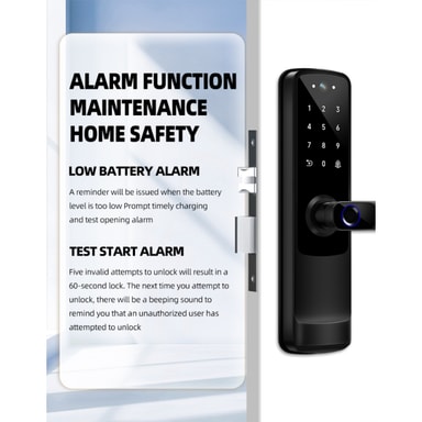 Flere oplåsningsmetoder: Oplev ultimativ fleksibilitet med Tuya WiFi Smart Dørlås's flere oplåsningsmetoder. Vælg mellem fingeraftryksgenkendelse, adgangskodeindtastning, RFID-kortadgang eller traditionel nøgleoplåsning, der imødekommer din foretrukne indgangsmetode. Den højpræcise fingeraftrykssensor sikrer hurtig og nøjagtig identifikation, mens den tilpasselige adgangskodefunktion giver dig mulighed for at oprette unikke koder til forskellige brugere. De medfølgende RFID-kort giver et praktisk alternativ til familiemedlemmer eller gæster. I tilfælde af nødsituationer eller glemte koder tilbyder den traditionelle nøgleoplåsningsmulighed en pålidelig backup-løsning. Denne alsidige smarte lås tilpasser sig din livsstil og giver en problemfri og sikker indgangsoplevelse hver gang. Tuya WiFi Smart Dørlås er designet til nem installation og brugervenlig betjening.
