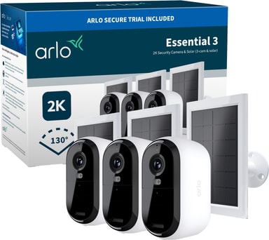Arlo Essential 3 2K overvågningskamera (3-pak) + Arlo solpanel (3)