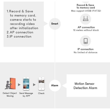 Bevægelsesdetektering: Med bevægelsesdetektering kan dette mini trådløse sikkerhedskamera straks advare dig om enhver mistænkelig aktivitet. Denne funktion giver mulighed for proaktive sikkerhedsforanstaltninger, der hjælper dig med at beskytte din ejendom og dine kære. Når bevægelse registreres, sender kameraet øjeblikkeligt en notifikation til din smartphone eller tablet, så du kan reagere hurtigt. Du kan justere følsomheden af bevægelsesdetekteringen for at undgå falske alarmer fra kæledyr eller andre ikke-væsentlige bevægelser. Denne funktion er særligt nyttig til overvågning af områder, hvor uautoriseret adgang er en bekymring, såsom indgange, baggårde eller kontorer. Bevægelsesdetekteringen giver dig ro i sindet, velvidende at du vil blive underrettet om enhver potentiel sikkerhedstrussel i realtid.