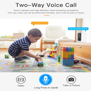 Tovejslyd : 360° støjreducerende overfølsom mikrofon eliminerer overskydende omgivende støj for en meget klarere lydkvalitet. De to parter kan tale eksternt uden hindring, og understøtter samtidig mobil APP, som kan bruges til fjerntliggende envejs videoopkald, som kan høres og ses.