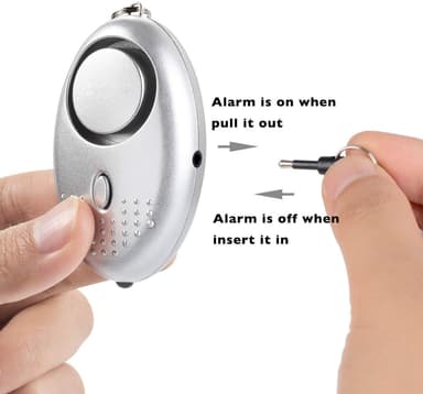 Høj angrebsalarm med et lydniveau på 130 dB. Placer angrebsalarmen i din nøglering, og du har den altid lige ved hånden, hvis der sker noget. Du kan nemt aktivere alarmen ved at trække sprinteren ud. Udskift sprinteren for at deaktivere alarmen. Overfaldsalarmen har også et indbygget LED-lys, der lyser, hvis du har brug for det. Lyden har en varighed på 1,5 timer, og LED-lampen kan bruges i 24 timer.