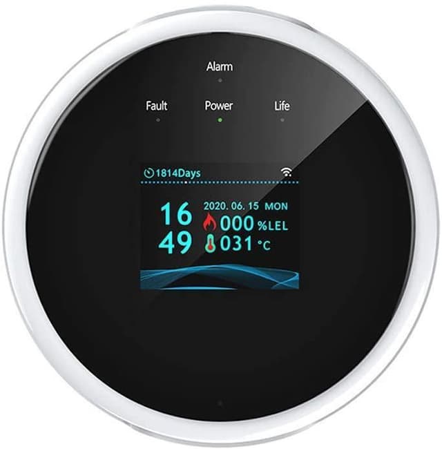Sikker gasalarm: Det kan være svært at opdage gaslækager, da gas kan være både lugtfrit og farveløst. Denne gasdetektor registrerer gaslækager af enhver art og advarer om det. Den registrerer også, om der ville være en usædvanlig høj temperatur.