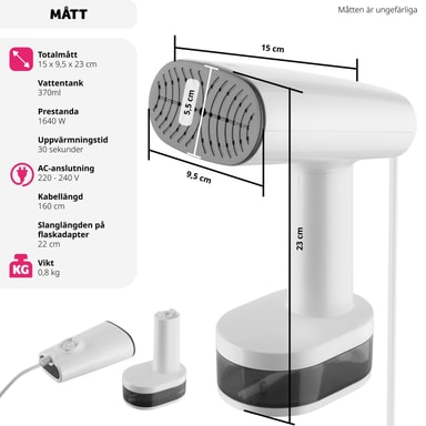 Takket være den korte opvarmningstid er enheden klar til brug efter 30 sekunder og sikrer med den store vandtank ekstra lang brug uden konstant genopfyldning. Det kompakte design og det smarte LCD-display gør desuden håndteringen yderst enkel. Og det bedste? Med flaskeadapteren kan den aftagelige damper nemt monteres på almindelige vandflasker, hvilket erstatter tanken – ideelt til rejser.