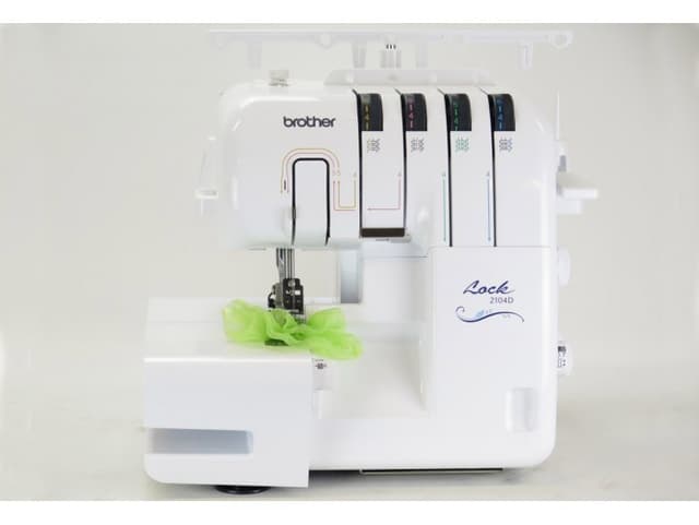 Brother 2104D Overlock 2104D er en ny og moderne modell fra Brother. Den svært brukervennlig overlock både for nybegynnere og alle som trenger en enkel overlockmaskin med alle de viktigste funksjonane.Funksjoner Mekanisk maskin som kan sy med 3 eller 4 tråder, og har 4 innebygde sømmer. Ved kjøp av ekstra trykkføtter kan en få 5 ekstra sømmer. Den har differensialtransportering, friarm og justerbar stinglengde og skjærebredde. Enkel treding gjennom trådutløysar og overlock maskinen har trådførar for undergriper. 3 eller 4 sømmer 4 standard sømmerFriarm Justerbar skjærebredde Justerbar differensialtransprtør 1300sting/min Trådutløysar Justerbar stinglengde Utstyr Følger med 1 nålsett. standard trykkfot, 4 trådsnellestoppere, pinsett, umbrako m.m