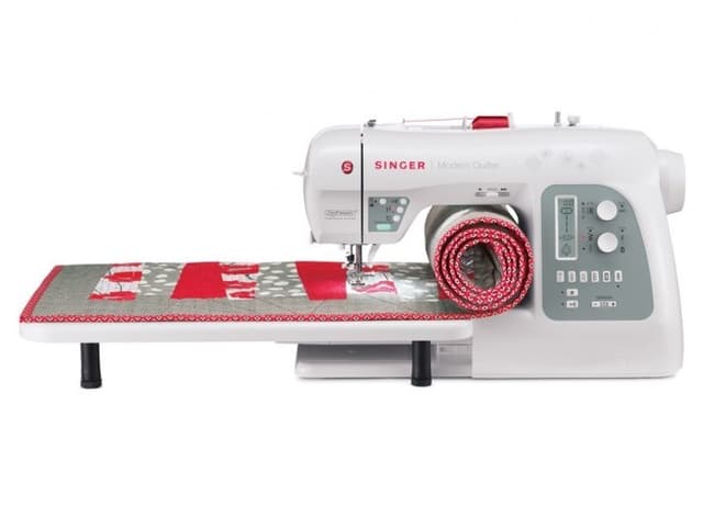 Singer Modern Quilter 8500Q Singer Modern Quilter 8500Q er en toppmodell fra Singer med mengder av tilbehør.Enkel i bruk med 5 knappar for direkte sømvalg.Funksjoner: symaskinen har 215 sømmer og 6 ulike 1trinns automatisk knapphull i tillegg til alfabet. Modern Quilter har minne for lagring av 20 sømmer/instillingar under eiga namn. Maskinen kan speglvende sømmer, og har tvillingnålfunksjon. Det er en start/stopp knapp for sying uten fotpedal, og trinnløs hastighettskontroll. Maskinen har ""SwiftSmart"" tredingssystem, og valfri nålstopp oppe eller nede. Den kan sy med maks stinglengde på 5mm, og en stingbredde på opptil 7mm. Trygt kjøp fra symaskiner.no 215 innebygde sømmer Alfabet Friarm 6stk. 1trinns automatisk knapphull Minnefunksjon for 20 sømmer Start/stopp knapp ""SwiftSMart"" tredning Speglvending av sømmer 7 delt box transportør trinnløs hastighetskontroll LCD skjerm Valfri nålstopp Nedsenkbar transportør Ekstra høyt trykkfotløft Justerbar trykkfotpress Justerbar trådspenning LEDlys syhastighet 750 sting pr. min. Trådkniv Norsk instruksjonsbok Utstyr følger med stort sybrett, overtransportør, quiltelinjal, diverse syføtter, synåler, undertrådspoler, kantlinjal, trådsnellestopper(stor og liten), sprettekniv og ett beskyttende vinyltrekk. m.m.