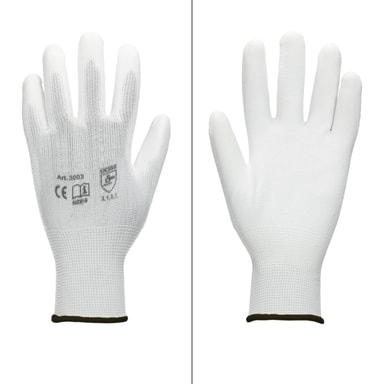 Leveringsomfang: 60 x par mekanikere handsker, PU Hvid DIN 10-XL
