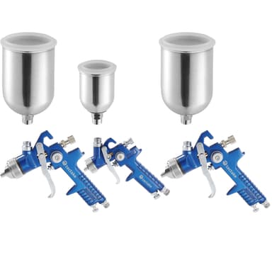 Denne tåge-reducerede sprøjtepistol er kendetegnet ved en høj overførselshastighed, minimal sprøjte-tåge, lavt luftforbrug og god forstøvning. Ved hjælp af HVLP-teknologi (High Volume Low Pressure - Høj volumen, lavt tryk) spares omkring 30% lak. Vores pistoler kan skilles helt ad i forbindelse med rengøring. De dyserne er lavet i rustfrit stål. Ideel til vandbaserede malinger.