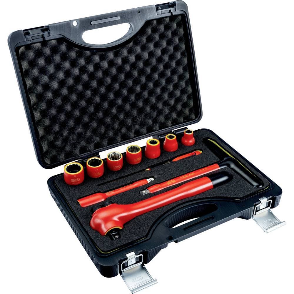 11-delt sæt 7800DMV - 1/2-topnøgle 10 mm, 11 mm, 13 mm, 17 mm, 19 mm, 20 mm, 22 mm 8150-1/2V - isoleret 1/2-sikkerhedstopnøgle, 270 mm 8154-1/2V - isoleret tværgreb, 200 mm 8160-1/2-firkant-forlænger, 125 mm 813VDE-5.5-125 - ifølge