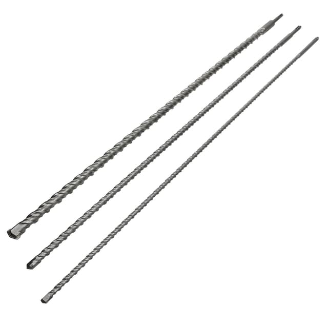 Leveringsomfang: 1x Ø 12 x 1000 mm SDS Plus stenbor 1x Ø 16 x 1000 mm SDS Plus stenbor 1x Ø 24 x 1000 mm SDS Plus stenbor