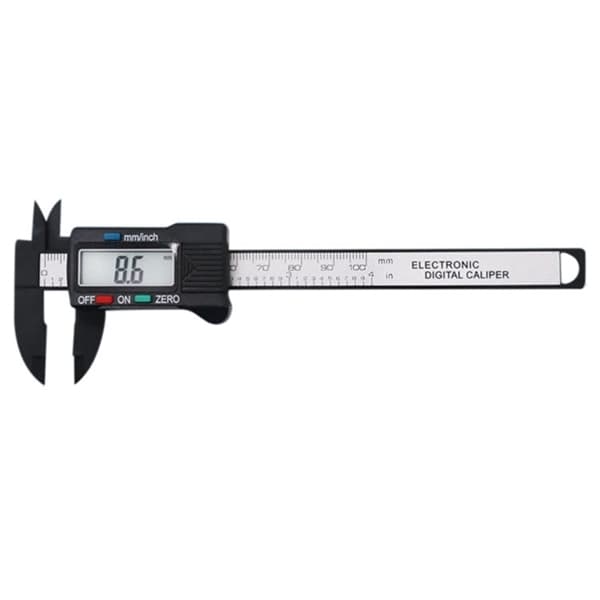 Digital skydelære, udformet for måling af indre og ydre diameter, dybde og trin. Et beskyttende plasthylster til opbevaring medfølger. LCD-skærmen er stor og viser et tydeligt og letlæst måleresultat. Du kan manuelt skifte mellem tommer og milimeter.Måleområde: 0-100 mm (0-4 tommer)Aflæsning: 0,1 mm (0,01 tommer)Nøjagtighed: +/- 0,2 mm (0,01 tommer)Testet og kalibreret ved fremstillingen for at nå ekstrem nøjagtighed.SpecifikationMateriale: Plast, kulfiberStørrelse: 177 x 60 mm