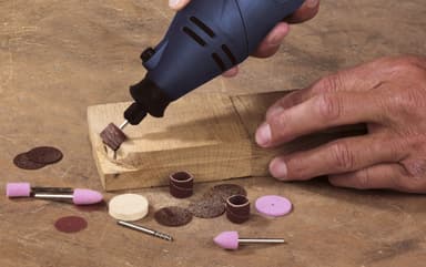 Leveres i en opbevaringskasse med 40 stk. tilbehør, som er velegnet til mange forskellige opgaver. Opbevaringskassen opbevarer dit tilbehør eller dine dele nemt og hurtigt.