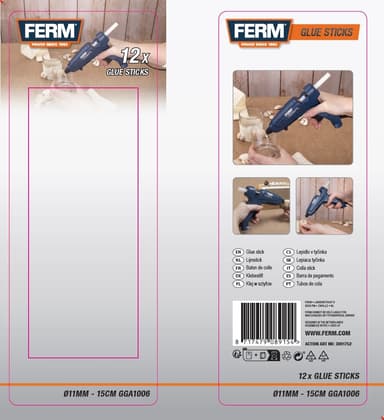 FERM GGA1006 limstifter! Disse limstifter har en diameter på 11 mm og en længde på hele 15 cm, hvilket gør dem kompatible med de fleste elektriske limpistoler – især FERM’s egne modeller.