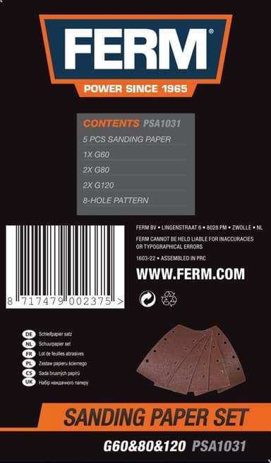 FERM PSA1031 Slibepapir - P60 - P80 - P120 - 5 stk – ACC