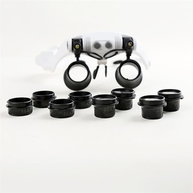 Brillerne leveres med fire forskellige forstørrelseslinser (10X, 15X, 20X, 25X), som nemt kan udskiftes, hvilket gør dem alsidige og perfekte til forskellige typer præcisionsarbejde.