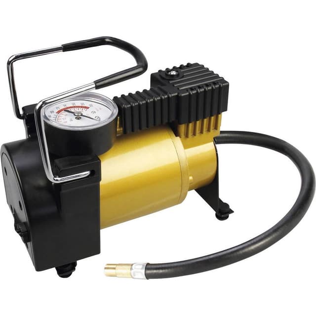 Førsteklasses Premium-kompressor med metalkabinet. 12 volt, 15 A, maks. tryk 7 bar, meget støjsvag, stor motor. Høj luftydelse (35 ltr./min) også egnet til store dæk (SUV, terrængående vogne, autocampere, lastbiler). Inkl. Forskellige adaptere. OBS!