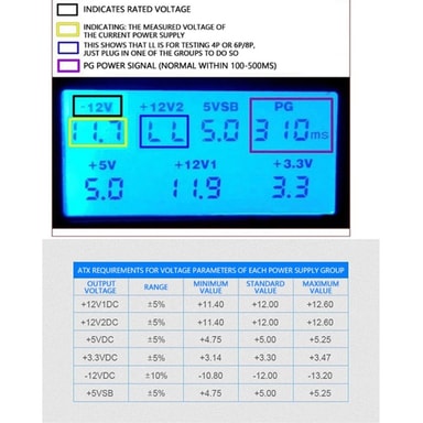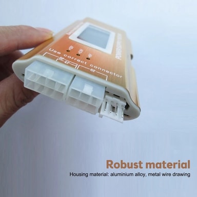 Det er et kraftfuldt testudstyr til strømforsyning, der kan detektere ATX, BTX, ITX, TFX computerstrømforsyning og kan vise hver gruppe af spænding og PG-værdi på LCD