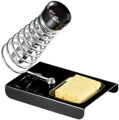 Loddekolbeholder med fjeder til sikker placering af en varm loddekolbe mellem arbejdstrin eller under opvarmning og nedkøling