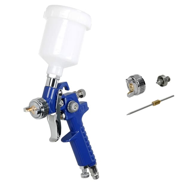 Leveringsomfang: 1 x HVLP sprøjtepistol 0.8mm x 1.0mm + 1 dysesæt 1 x rensebørste 1 x plastbæger med 100 ml skruelåg