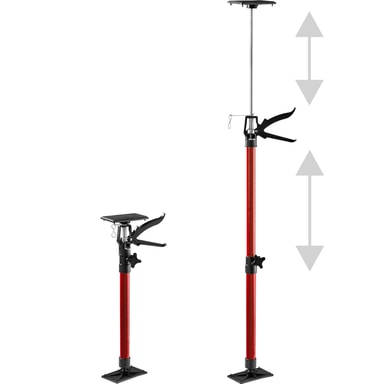 Sættet med 6 monteringsstøtter fra tectake er den praktiske hjælp, når dørkarmen skal monteres eller justeres. Elementstøtterne er klar til brug i en håndevending. Teleskopstangen af et robust metalrør med fjeder og trykplader af plast egner sig ideelt til at tilpasse og fiksere dørkarmene. På denne måde undgår man, at karmen rykker sig. Takket være den trinløse justering kan man opnå den ønskede spænding præcist. Kugleledene gør trykpladerne for enden af dørstøtten bøjelige. monteringsstøtter kan endda anvendes på skrå.