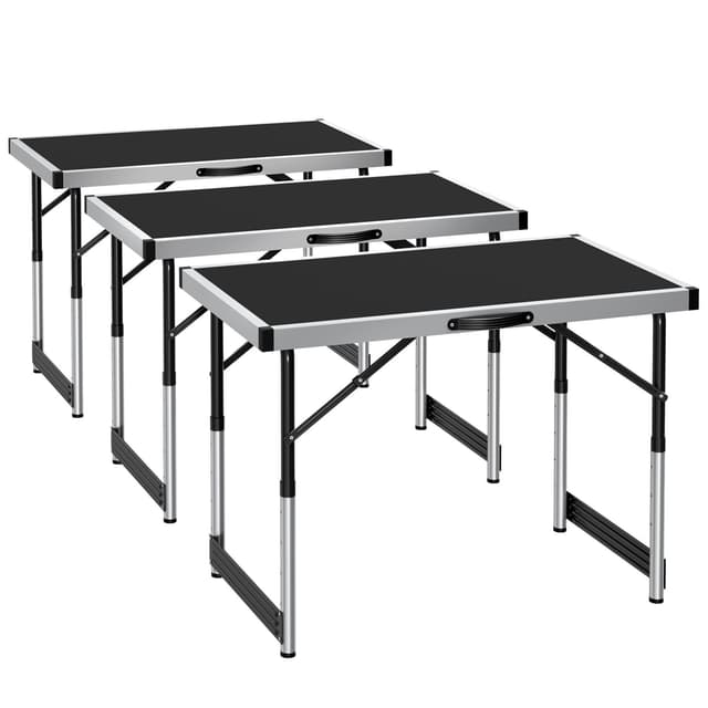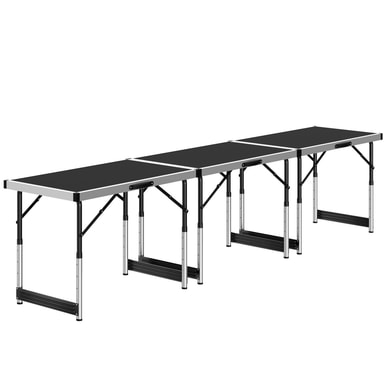 Hvad enten du skal arbejde eller holde fest - de praktiske og stabile klapborde kan bruges til mange ting. Med en arbejdsflade på 300x60 cm. er det let som ingenting at klare pladskrævende opgaver. Når opgaven er klaret eller festen er slut, kan bordene nemt og hurtigt klappes sammen og opbevares. Desuden har bordbenene praktisk gulvbeskyttelse og bordpladerne har kantbeskyttelse. De tre klapborde kan indstilles i højden med de fire niveauer, så de kan tilpasses formålet.