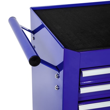 pulvercoatede værktøjsvogn antiskridmåtter i skufferne og på bordpladen.