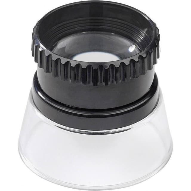 Forstørrelsesglasset har en rund, sort plastikramme med gennemsigtig stådel. Hermed sikres, at der falder tilstrækkeligt lys ind på målobjektet og genkendeligheden øges. Plastiklinse (Fix-Optik) med 15 gange forstørrelse. Kan med fordel bruges til fremstilling af kredsløbskort, tegninger, printmaterialer, boreplaner, kredsløb og meget mere.
